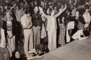 One of the choruses popular at the time was “Alleluia.” That was it, just the word “Alleluia” sung four times to a slow, lilting tune. The chorus was sometimes lengthened with “Love you, Jesus” and “Jesus Is Lord.” These would be repeated over and over and over. It was a deeply emotional experience.